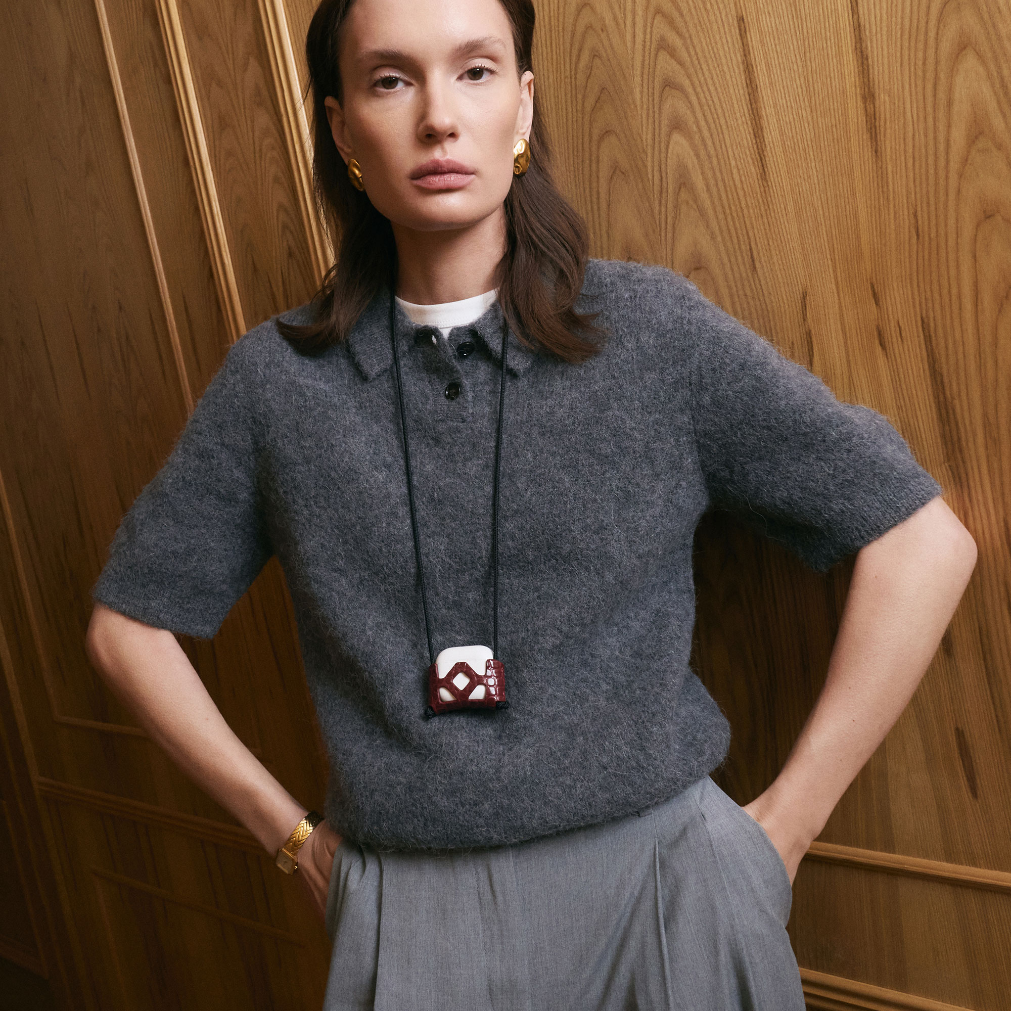 Шкіряний чохол для ваших AirPods з вирізаним лого Kate Kore, що обіймає кейс – баланс між формою і функцією. Натуральна шкіра, м’які лінії та плетений нейлоновий ремінець, який можна носити на шиї, зав’язати на сумку або зняти.