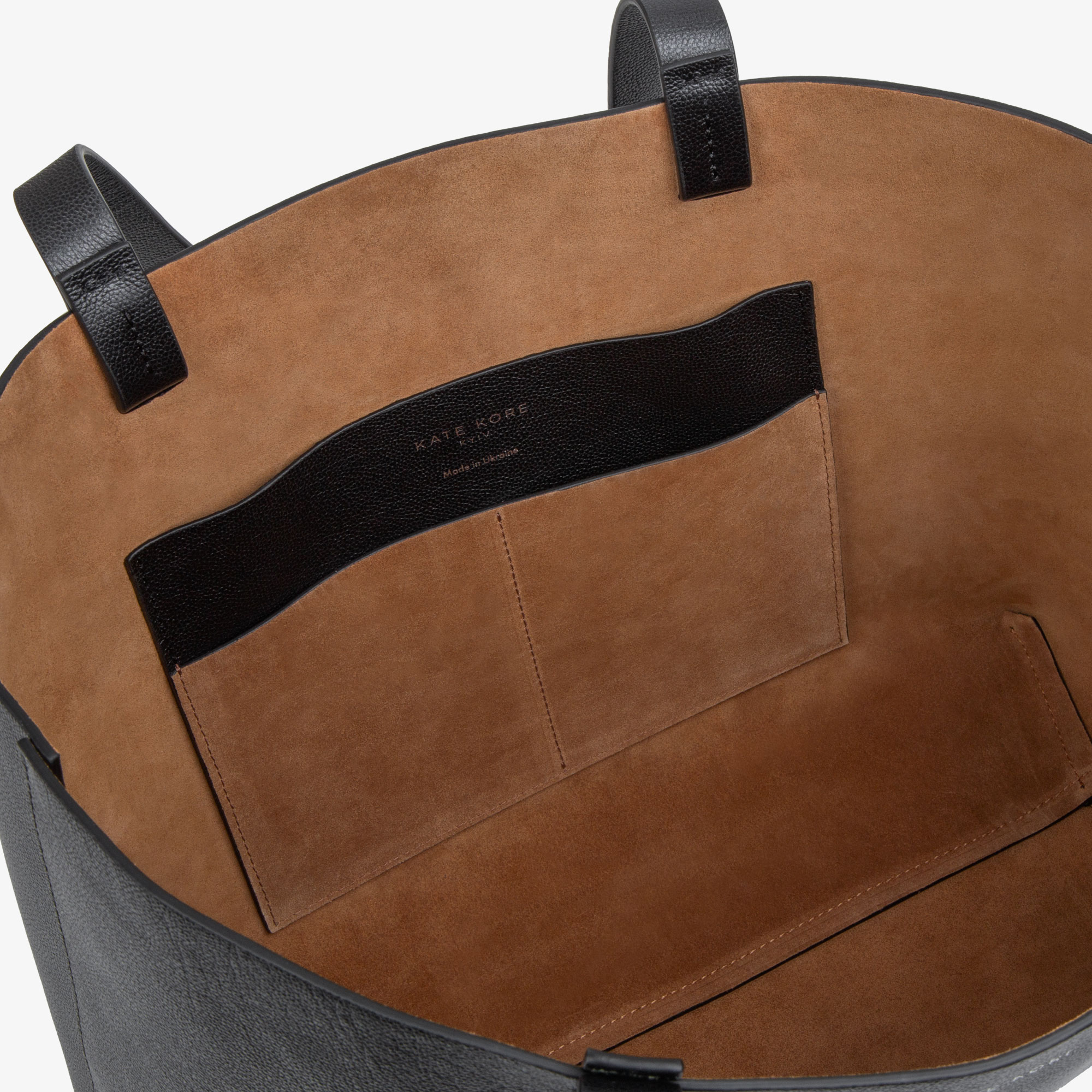 Класична сумка Tote з акцентом на елегантність та простоту форми. М’яка натуральна замша всередині робить сумку приємною на дотик, а лицева шкіра з мілкою текстурою додає витонченості. Ручки наскрізь створюють відчуття цілісності та легкості, а внутрішні кармани допомагають підтримувати порядок.